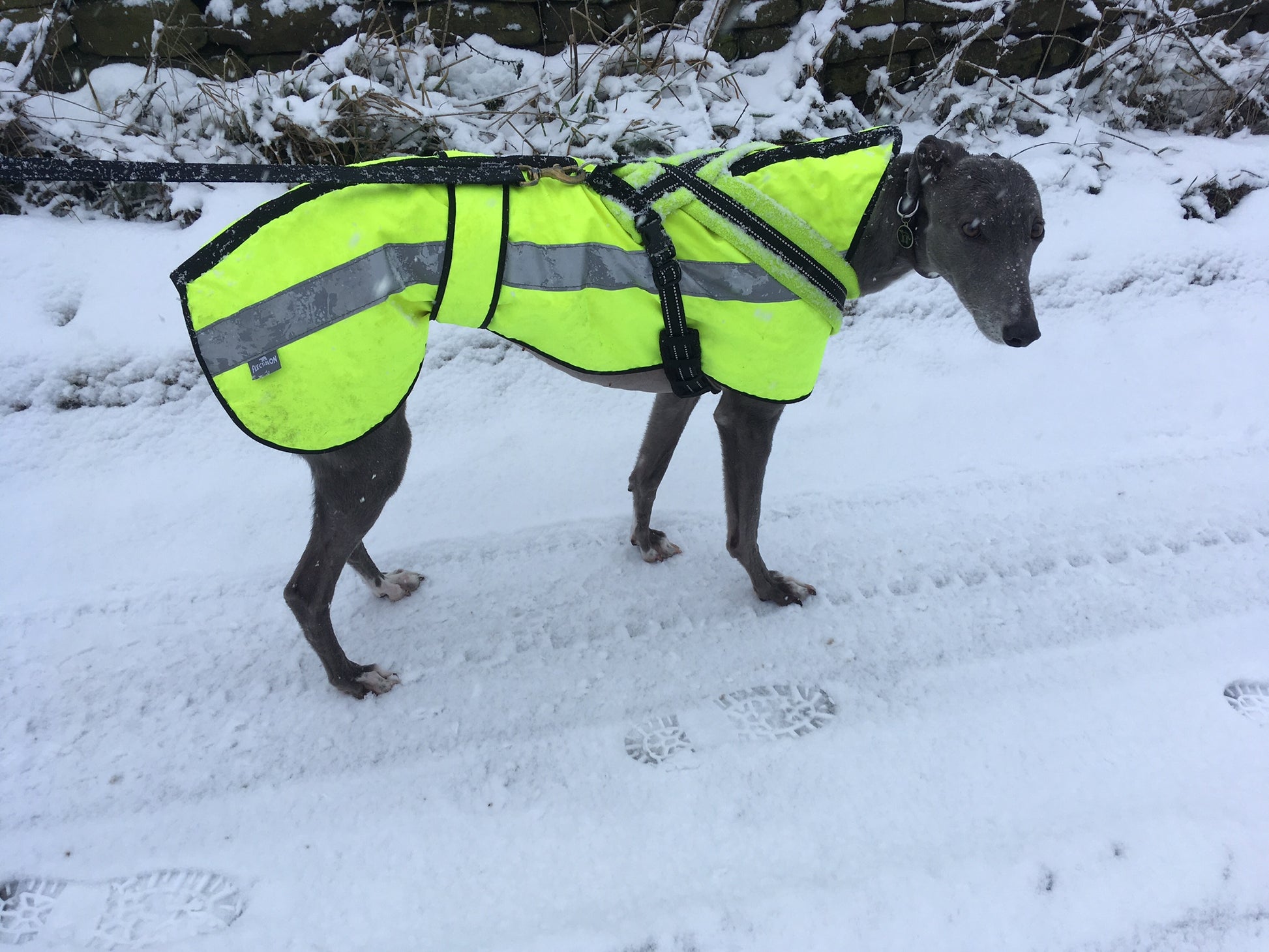 NASA research has found that by combining conventional trapped air thermal insulation with a multiple mirror finish surface which reflects infra-red heat away from an animal contained within, the animal would stay warmer using their own body heat for long periods of time. Made from Flectalon material: lightweight and offers superior insulation. Produced in a high-visibility fluorescent fabric with reflective banding to increases visibility in low light.